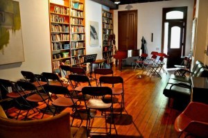 The 213 Listening Room is the library of a private residence. The Listening Room is at the entry of the home and is about 15′ x 27′ in size. Entry is either streetside or through the side alley. A restroom is available for use as is a kitchen, if desired. Parking is street parking.
